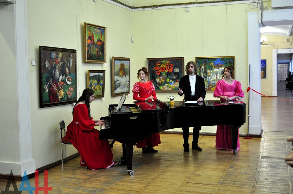 Торжественная церемония открытия выставки сопровождалась музыкально-хореографической инсталляцией в исполнении студентов Донецкого училища культуры. Они подготовили четыре мини-постановки, символизирующих разные эпохи становления города с XIXвека.