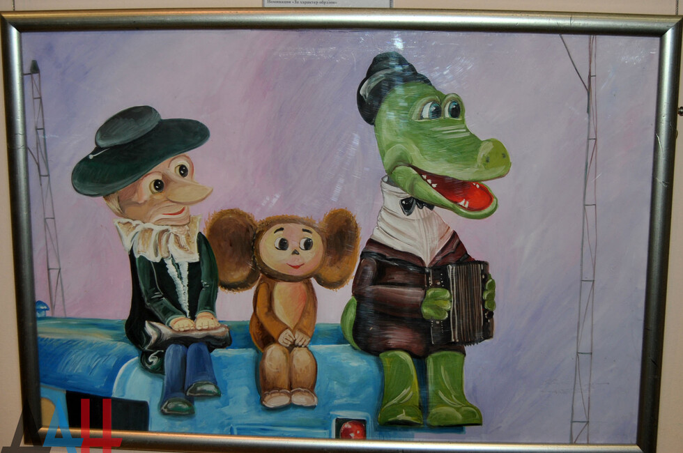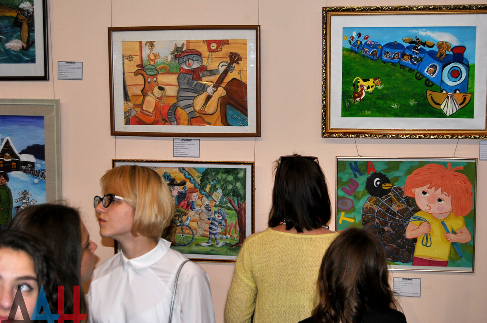 Участники выставки представляли более 20 художественных школ и школ искусств из Донецка, Макеевки, Енакиево и других городов и районов ДНР. В своих работах, разных по жанрам и техникам, они изобразили героев произведений Успенского. Например, Валера Колопатин из Донецка подал свою картину «Веселая семья», Лиза Кандаленко также из столицы Республики изобразила Чебурашку и Крокодила Гену, а Кира Гуренкова из Макеевки нарисовала Кота Матроскина, который учит Галчонка. Всего - около 150 работ.