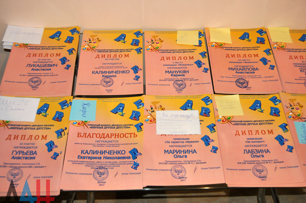 Донецк, 19 мая – корр. ДАН. Выставка детских работ «Верные друзья детей» открылась сегодня в Донецком художественно-выставочном центре «АртДонбасс». В экспозиции представлены работы участников и победителей открытого конкурса рисунка, посвященные любимым персонажам произведений легендарного детского писателя Эдуарда Успенского.
