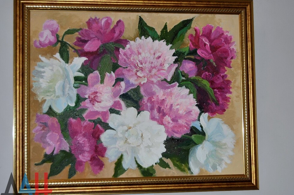 В экспозицию вошли около пятидесяти работ. Здесь и виды Донецка, знакомые горожанам с детства, и натюрморты, и портреты. Отдельная серия работ посвящена Донецкому ботаническому саду - "Дождь в Ботаническом саду", "Цветут пионы в Ботаническом саду" и другие.
