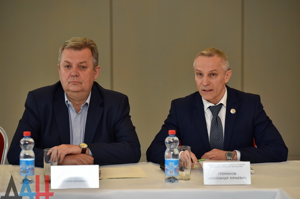 министр молодежи, спорта и туризма ДНР Александр Громаков, заместитель министра физической культуры и спорта Свердловской области РФ Андрей Зяблицев, начальник управления спорта и молодежи министерства культуры, спорта и молодежи ЛНР Олег Шеренешев.