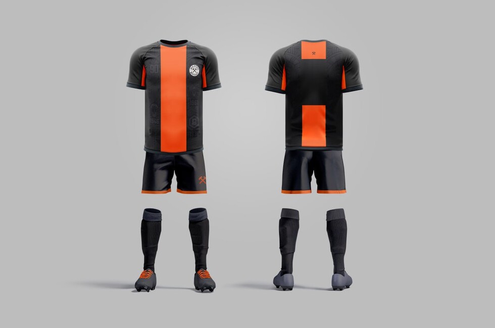Футболка выполнена в черном цвете с оранжевой продольной полосой в середине. Шорты — полностью черные с оранжевой окантовкой. В клубе отметили, что обновленный комплект будет представлен в ближайшее время.