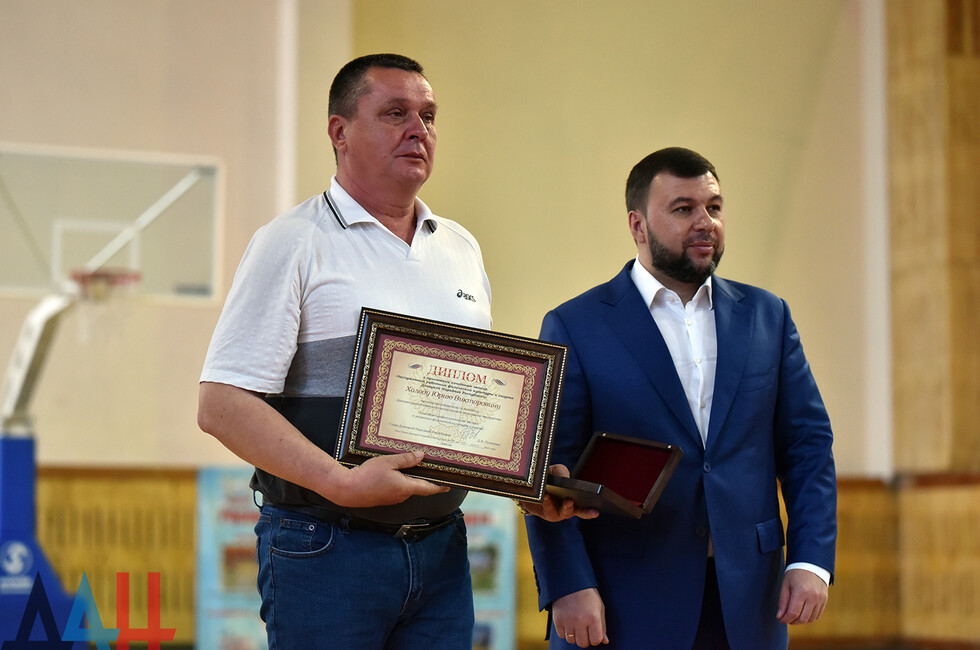 Глава ДНР вручил нагрудный знак «Заслуженный работник спорта и физической культуры» тренеру по волейболу Донецкой республиканской школы высшего спортивного мастерства Юрию Холоду. Также спортсменам и тренерам были вручены 16 почетных грамот и 43 благодарности.