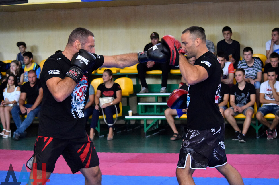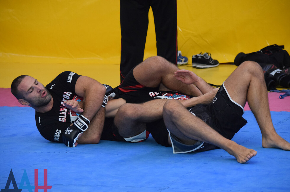 Донецк, 24 авг – корр. ДАН. Открытая тренировка участников международного турнира по смешанным единоборствам «Единый Донбасс» прошла сегодня в донецком спортклубе «Спартак». Мастерство боя демонстрировали четыре бойца, среди них хедлайнеры будущих состязаний Никита Крылов из Красного Луча и Маро Перак из города Дубровник (Хорватия).