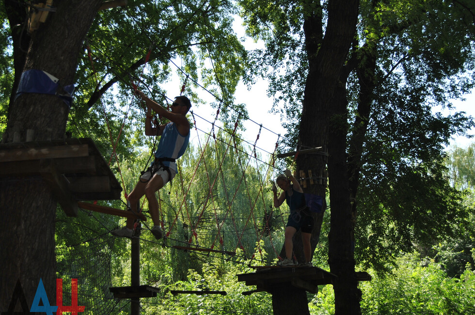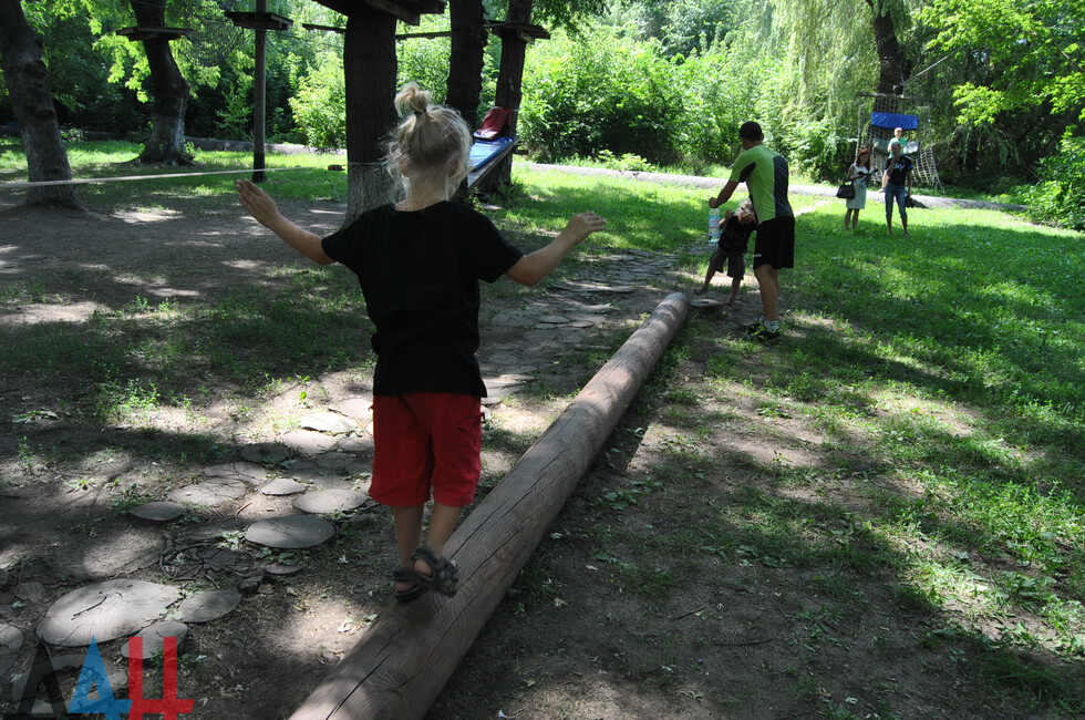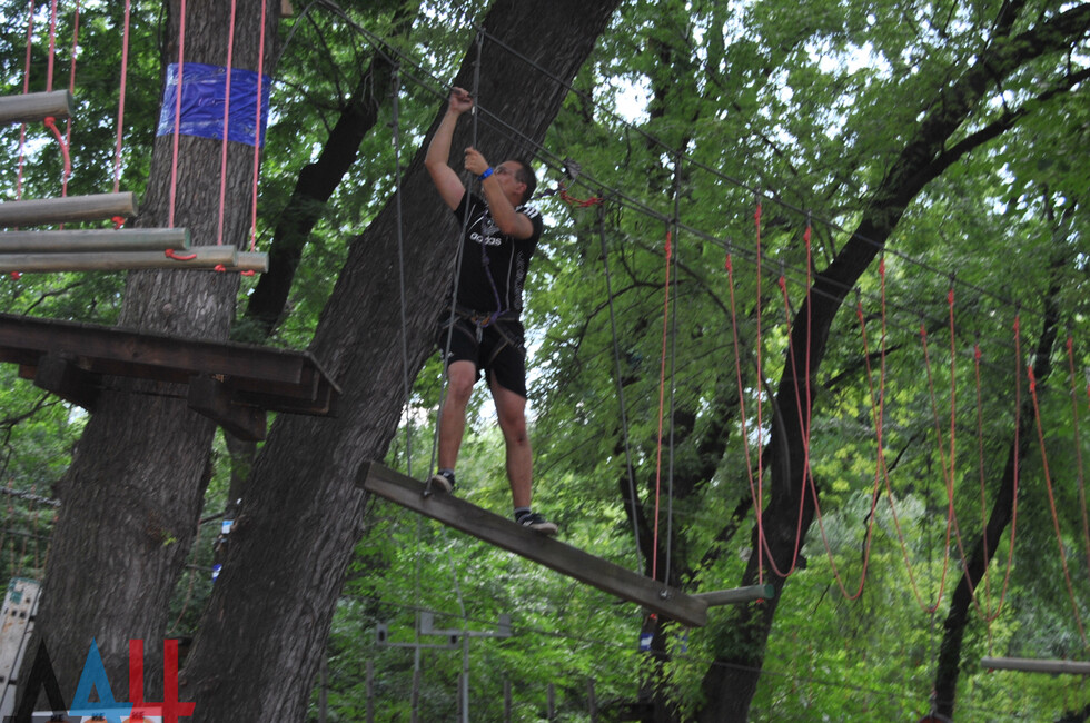 Донецк, 21 июл – корр. ДАН. Жители с нарушением слуха из городов ДНР и подконтрольной украинским властям части Донецкой области собрались сегодня в Донецке на Республиканские соревнования «День семейного досуга». Площадкой для спортивного праздника стал веревочный парк «Лень в пень» столичного центрального парка культуры и отдыха им. Щербакова.