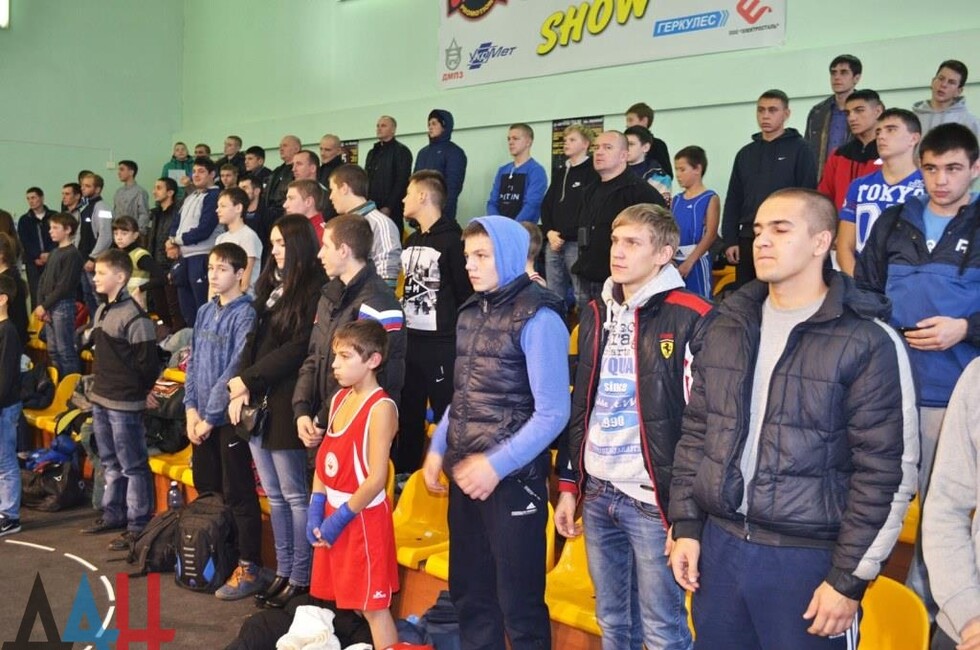 Чемпионат ДНР по боксу приурочен к 70-летию Победы в Великой Отечественной войне, и участники во главе с рефери прошли торжественным маршем по спортивному залу. Собравшиеся почтили минутой молчания память павших героев ВОВ и бойцов современного ополчения Донбасса.