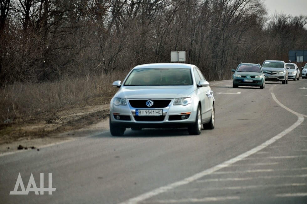 Дальше по дороге – блокпост. Тут стоит техника с белыми буквами Z. Много военных, в разы больше – гражданских. Вереницы машин, многие из них – повреждены: побитый корпус, стекла в трещинах, отверстиях от осколков и пуль. Есть машины и вовсе без стекол, в том числе – без лобовых.
