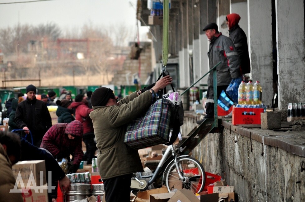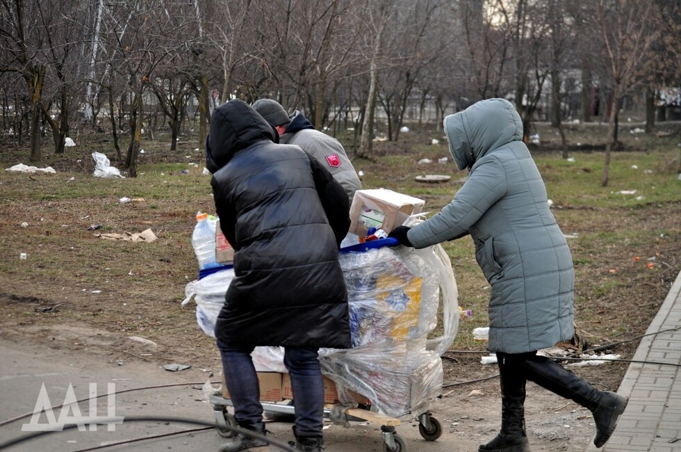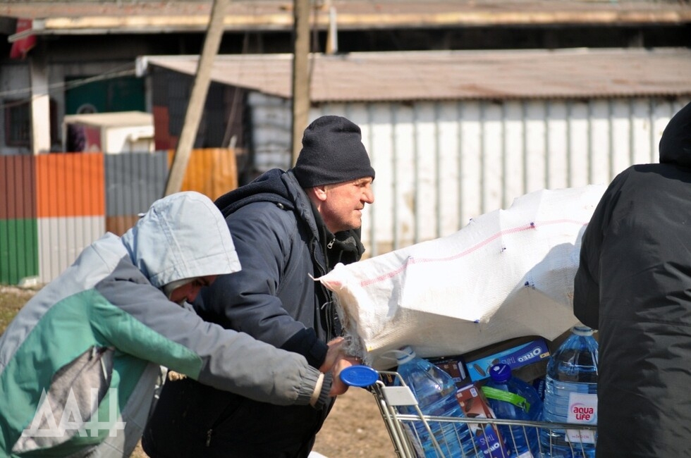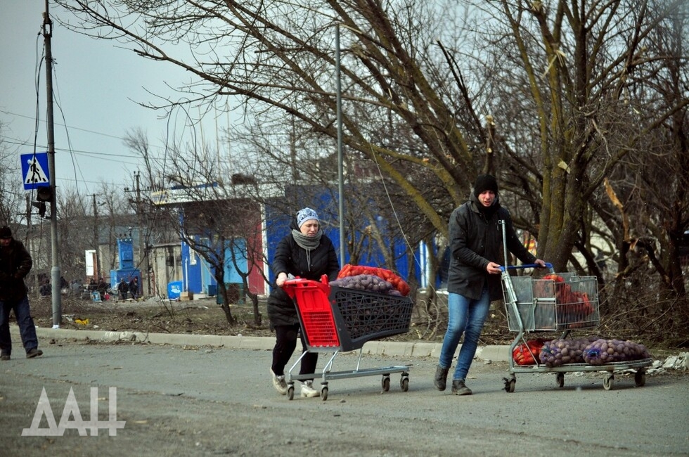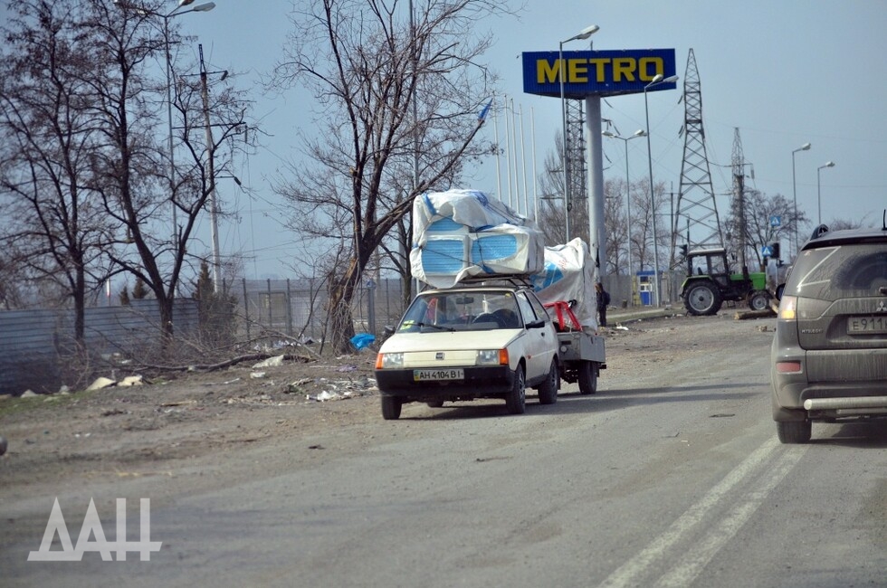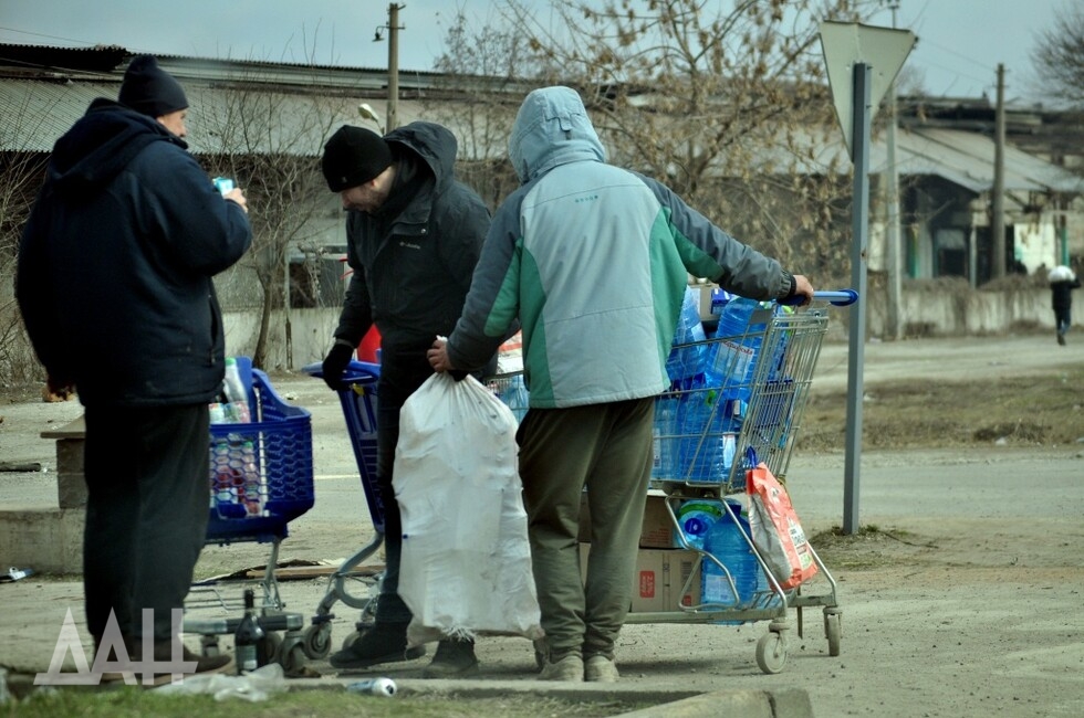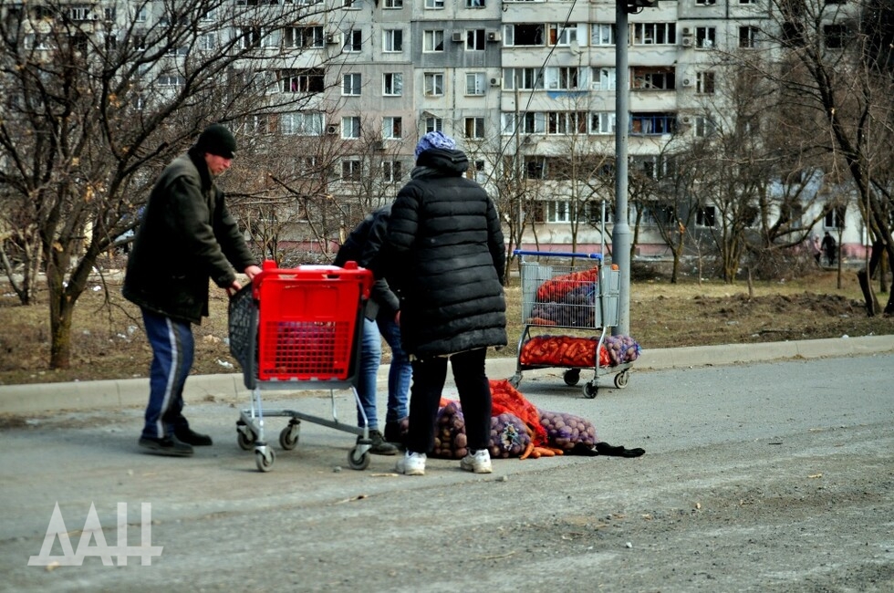 Еще в районе блокпоста можно заметить людей с тележками из супермаркетов. По улицам города многие ходят так. Подобную картинку можно увидеть в фильмах о постапокалиптической реальности, например в драме «Дорога». Для жителей Мариуполя сейчас это – повседневность. Если пешком проходят блокпост – в тележке перевозят свои вещи и домашних питомцев. Те же, кто остался в городе, везут продукты, взятые в магазинах и на складах. Им не мешают. Ведь на данный момент это – единственный способ выжить.