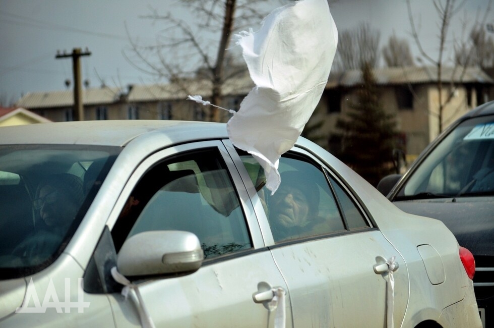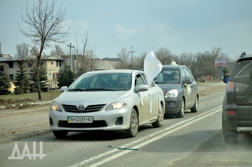 На многих машинах написано «дети» или «семья», а еще вывешены белые флаги, сделанные из простыней или порезанной одежды. Мариупольцы боятся, стараются любыми способами показать, что в машинах – мирные люди. Там, где стоят войска ДНР и РФ, это и не нужно – по гражданским машинам, естественно, никто из них стрелять не будет. Что касается нацистов из «Азова» (организация запрещена в ДНР), то их не останавливают ни надписи, ни флаги. Свидетельства преступлений украинских боевиков можно увидеть на обочинах дорог, в полях и посадках.