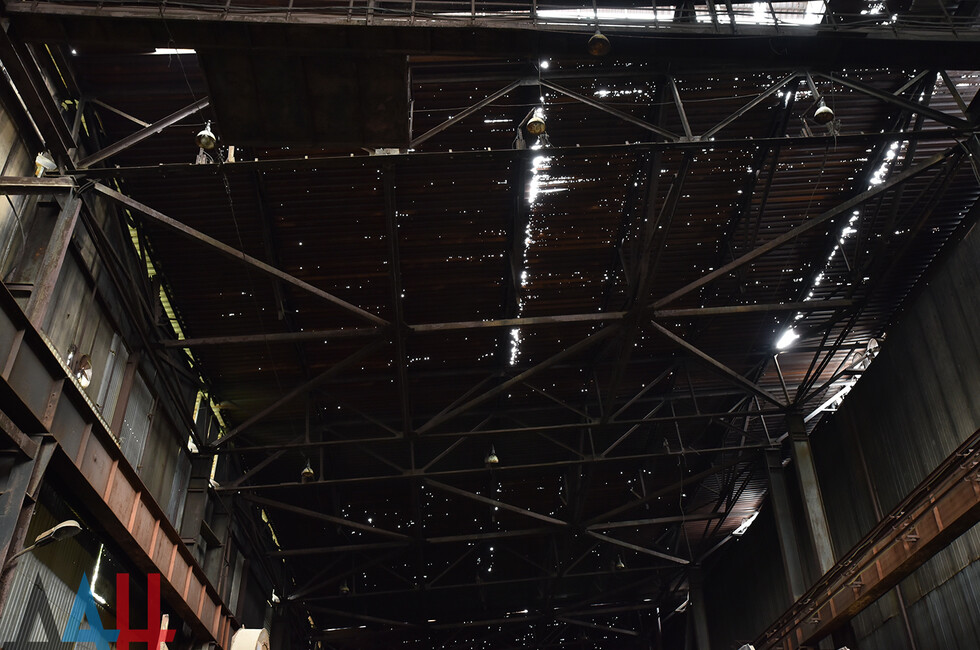 Завод расположен в Куйбышевском районе Донецка. Примерно в 6 км к северу украинские окопы. К обстрелам на предприятии люди привыкшие. Говорят, что с 2014 года по территории пришлось около 40 попаданий артиллерийских снарядов. Производственные цеха и сегодня несут следы тех ударов: повреждены кровли зданий, в стенах довольно внушительные пробоины.