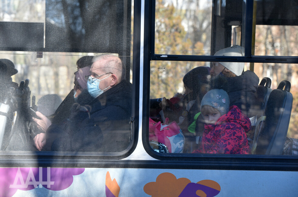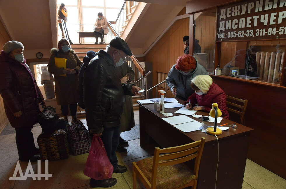 «Мы зарегистрировались на рейс вчера вечером по телефону, сейчас ждем автобус на 11:00. Еду с внуками и правнуками», – говорит житель поселка Новороссийского на северной окраине Донецка Михаил.