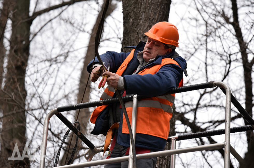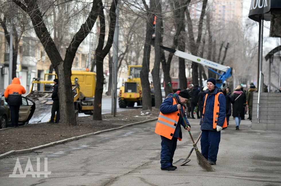 Стены домов по улице Университетской испещрены следами поражающих элементов кассетных суббоеприпасов. Окна – в трещинах или вообще выбиты, фасады небольших магазинов на первых этажах домов изуродованы ударной волной. Но здесь уже вовсю кипит работа, сотрудники коммунальных служб убирают обломки и битое стекло, исправляют уличное освещение, ремонтируют, насколько это возможно, поврежденные фасады зданий.