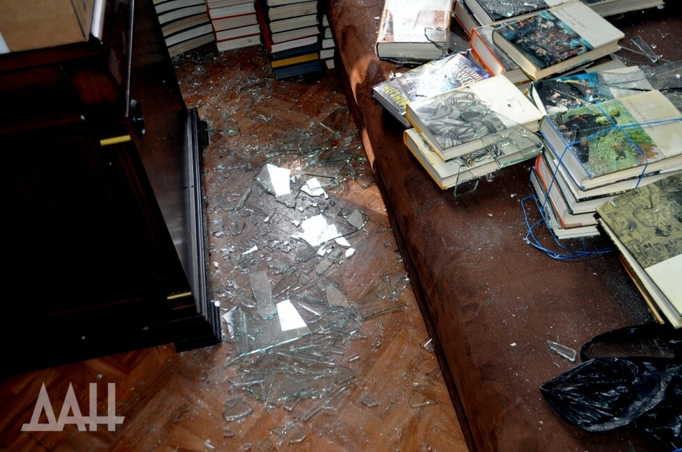 Писатели, засучив рукава, взялись за ремонт. Осторожно вытаскивали поврежденные стеклопакеты, собирали осколки и строительный мусор. Вскоре разбитые окна уже были зашиты деревянными панелями, внутри самого помещения Союза писателей ДНР также навели порядок своими силами.