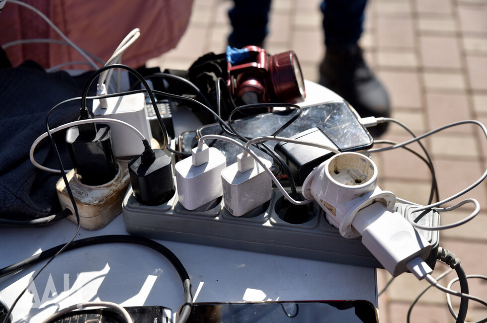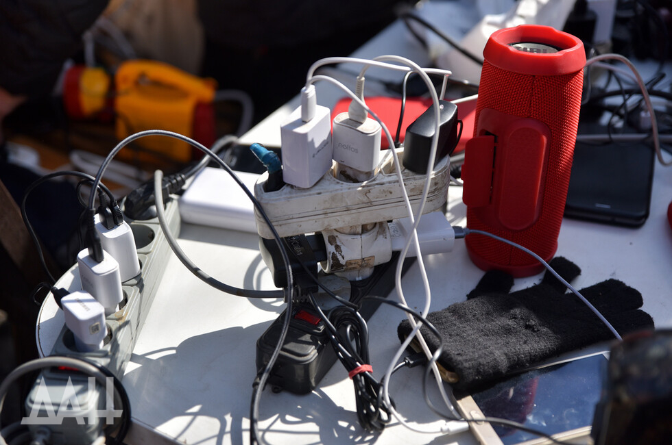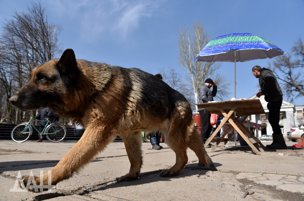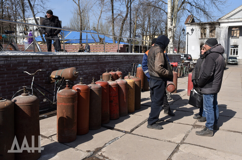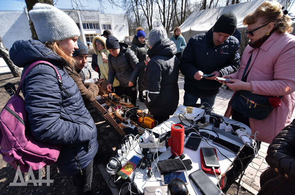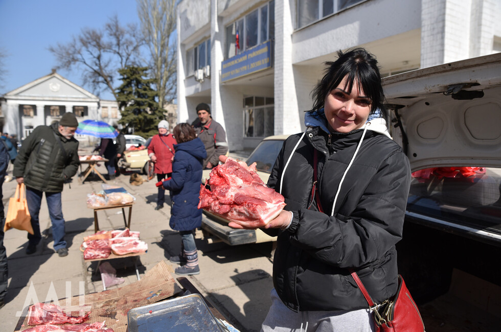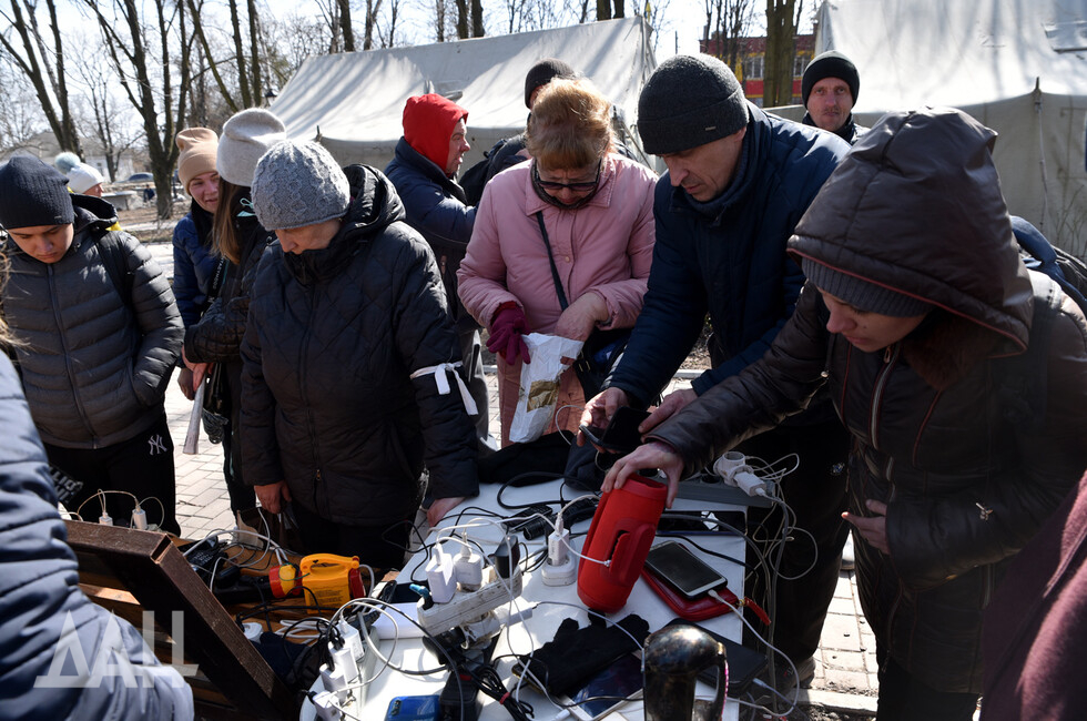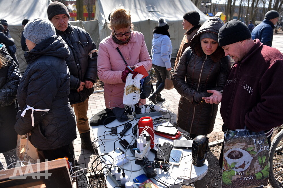 Главная площадь Волновахи возле здания местной администрации сейчас – самая оживленная часть города. Сюда практически ежедневно привозят гуманитарную помощь, республиканские продукты на продажу, также работает выездное отделение Центрального республиканского банка. На месте установлены палатки от МЧС ДНР с горячими напитками, есть точки для подзарядки мобильных устройств от генератора. Порядок обеспечивают военнослужащие Народной милиции и полиция.