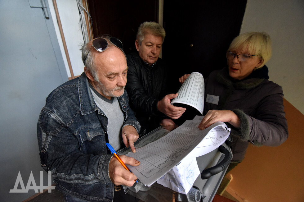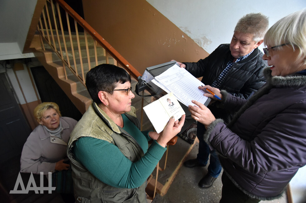 Донецк, 24 сен — корр. ДАН. Волеизъявление в эти дни происходит на придомовых территориях, для удобства и безопасности голосующих бюллетени выдают прямо возле парадных или даже на лестничных маршах. Корр. ДАН побывали сегодня в Буденновском районе Донецка.