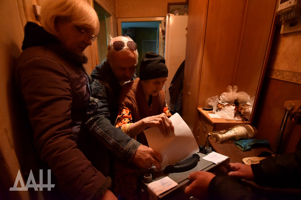По заявлению граждан можно проголосовать и дома. Жительница Донецка Ирина воспользовалась такой возможностью. Гостей встречает с улыбкой и благодарностью.
