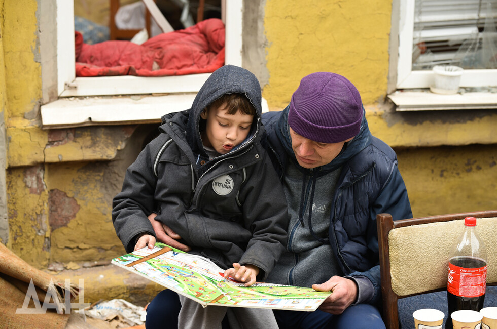 «Хочется погулять во дворе, но взрослые не пускают. Говорят - опасно. Вот и сидим в подвале. Играем в уголки. Еще в карты с родителями. Ну, в «дурачка»… Я книжки читаю, которые взял с собой. Сейчас – «Знаменитый утенок Тим и другие сказки». А так – в подвале сидеть скучно. Погода уже хорошая – на улице бы играть. Я обстрелов уже не боюсь. Ну, стреляют и стреляют», – рассказывает Максим, поправляя очки.
