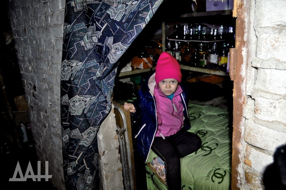 Арина и Лера живут в подвале вместе с папой, мамой и бабушкой. Пробовали перебраться обратно в квартиру, но снова началась сильная стрельба – решили не рисковать. В подвале – абсолютная темнота, по узким коридорам можно передвигаться только с фонариком или свечкой. В подвальных отсеках среди коробок и банок лежат матрасы, на них – одеяла и простыни. Входы завешены простынями и покрывалами: все двери давно ушли на дрова.