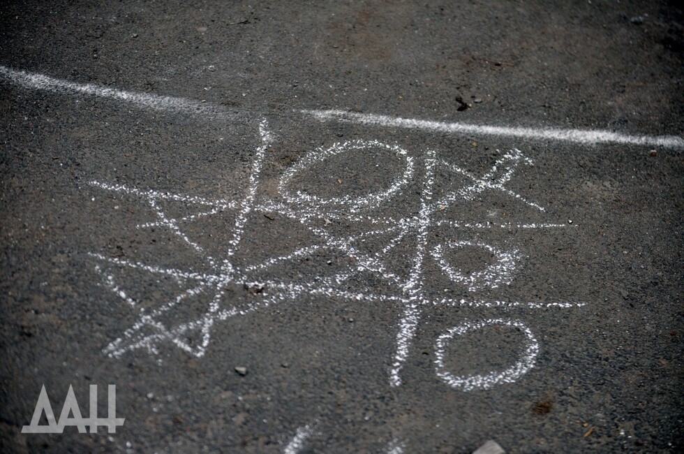 Прямо у дома – детская площадка. Лесенки и качели в прекрасном состоянии, что резко контрастирует с разрушениями вокруг. В песочнице – ведерки, лопатки, игрушечные грузовики и формочки. Когда в очередной раз зачеркнут ряд крестиков, а до этого – ряд ноликов, когда нарисован очередной цветок и еще несколько сердечек, девочки бросают на асфальте свои «мелки», бегут кататься на качелях, весело смеются. Будто бы нет вокруг никакой войны, будто бы не грохочет.