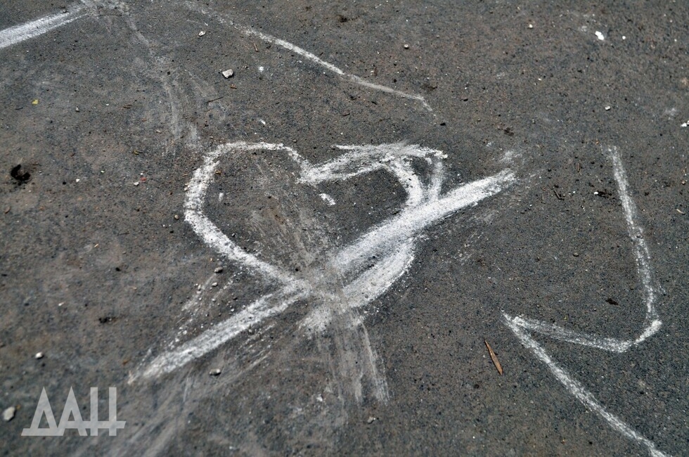 Арина и Лера играют в крестики-нолики, а еще – рисуют. Асфальт у дома по улице Владимирской весь в цветах и сердечках. Вместо мелков у девочек – куски гипсокартона, среди развалин много таких обломков. Почти все здания вокруг – сгорели или разрушены, а дом, в подвале которого живут сестры, поврежден обстрелами. Слышен гул двигателей самолета, что-то постоянно улетает и прилетает, свистит и взрывается. До «Азовстали», где продолжаются бои, отсюда – менее двух километров.
