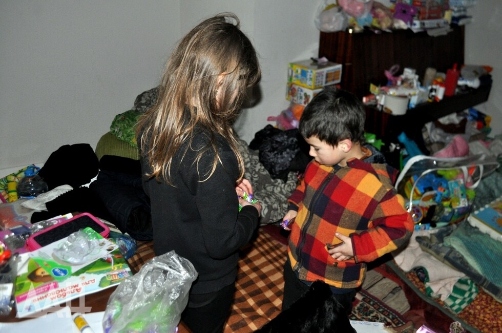 «Я – Софийка, а это – Илона и Давидка. Мы тут живем, играем и учимся. И рисуем, и разукрашиваем, и пишем, и читаем, и считаем. Сегодня мы играем, что я их мама, а они мои дети. А вчера с Давидкой в школу играли, что я его учительница. Когда погода хорошая, мы и на улице бегаем, а сейчас погода плохая, родители говорят сидеть здесь», – рассказывает девочка.