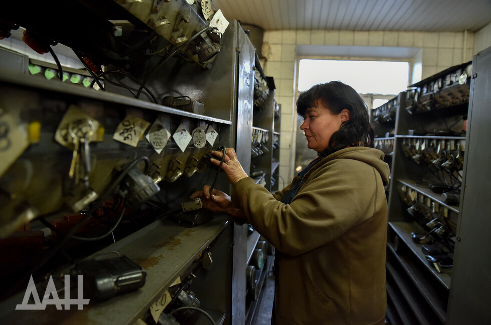 Поездку на шахту мы подгадали так, чтоб запечатлеть возвращение шахтеров после рабочей смены. Проходим в помещение первого вентиляционного ствола шахты. Подъемом и спуском клети управляет Юлия Саенко.