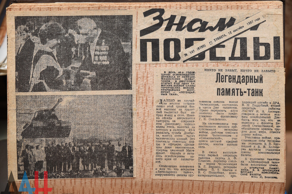 «Танк Т-34-76 образца 1942 года участвовал не просто в войне, а именно в боях на территории Донбасса. Он собран, скорее всего, из узлов разбитых машин. Здесь в Донецке были ремонтные базы. Одна, точно знаю, находилась в районе железнодорожного вокзала. Скорее всего, 1-го отдельного гвардейского тяжелого танкового полка прорыва, либо 140-й отдельной танковой бригады, либо 60-го отдельного гвардейского тяжелого танкового полка прорыва», – выдвинул гипотезу Вязов.