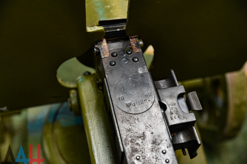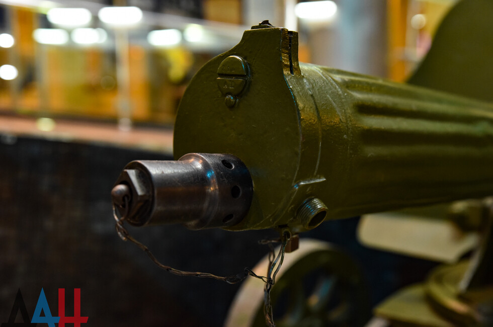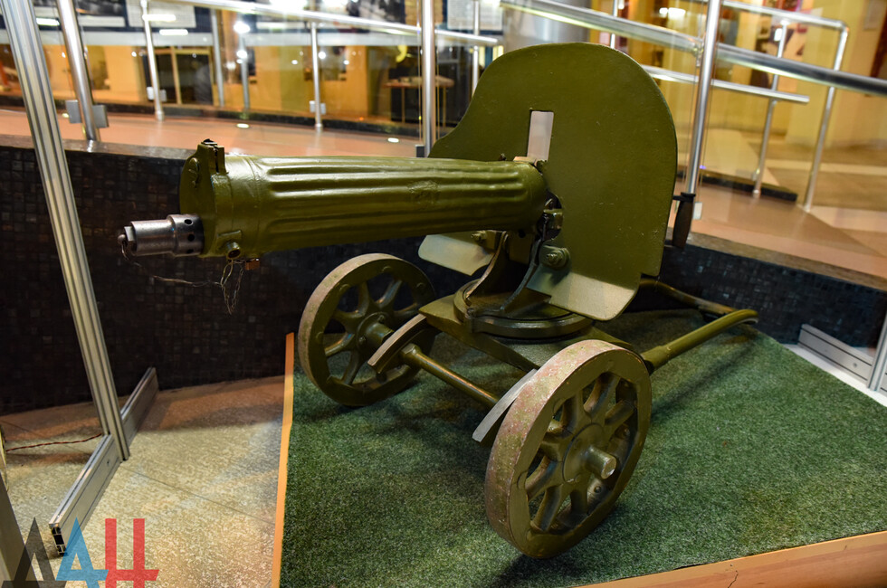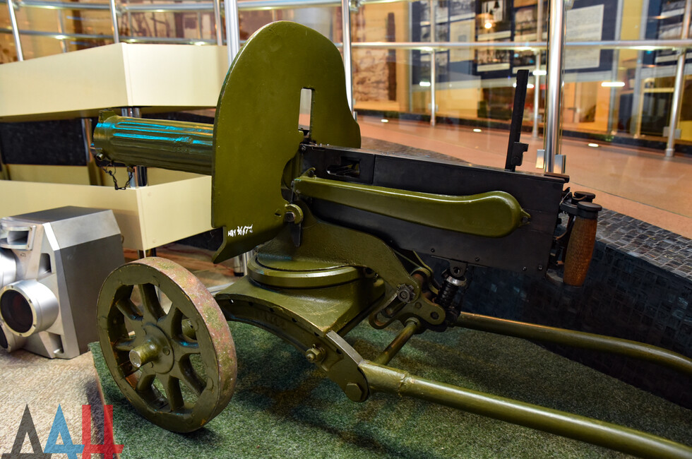 Пулемет Максима (Хайрем Стивенс Максим – британский оружейник американского происхождения, создатель пулемета) выпуска 1942 года с высоты Саур-Могилы также экспонируется в музее. Напомним, что это вообще первый образец самозарядного пулемета в мире, он разработан в 1883 году. А непосредственно музейный экспонат, судя по клейму, изготовлен в 1942-м.