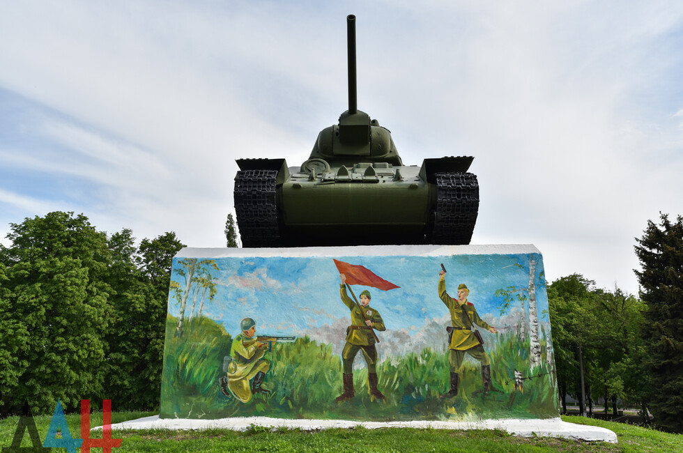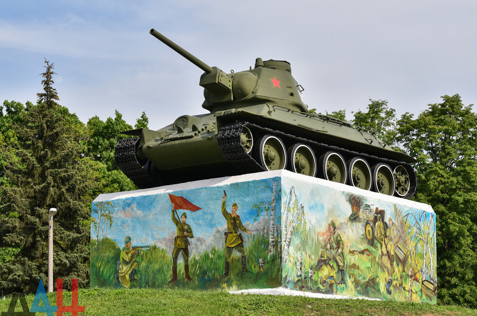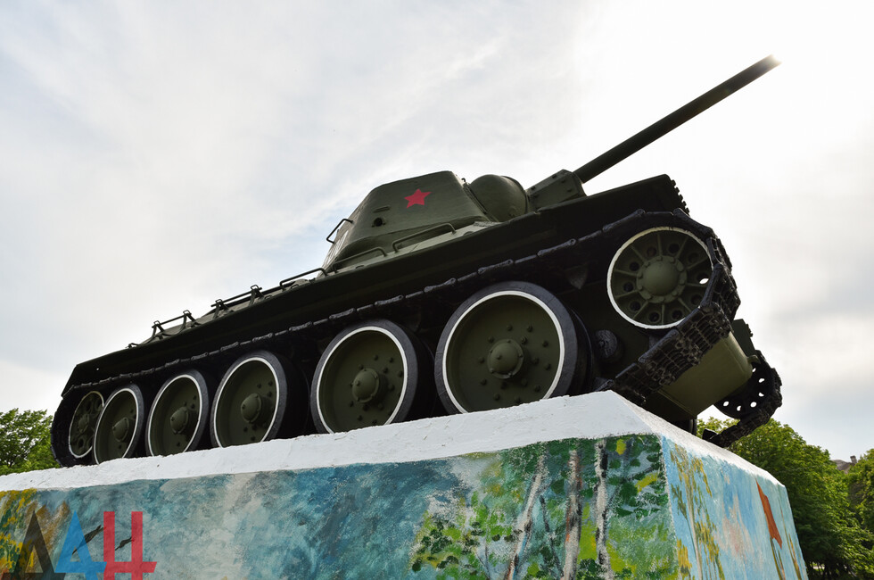 В городе воинской славы Горловке в сквере имени Советской Армии находится еще один уникальный артефакт Великой Отечественной войны. Речь идет о памятнике над братской могилой танкистов, погибших при освобождении города от гитлеровских оккупантов. На постаменте возвышается танк Т-34-76.