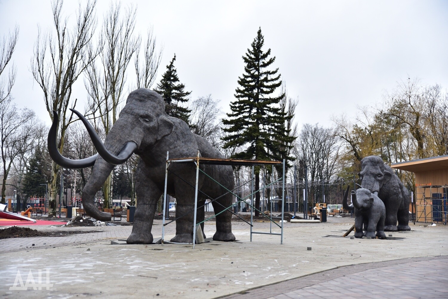 Отдельно остановимся на развитии комфортной городской среды в Макеевке. Недавно мы писали о завершении масштабного проекта в микрорайоне Зеленый — Аллеи Победы. А сегодня внимание всего города приковано к Югорскому парку возле ж/д вокзала: там появились качели, детские площадки, спортивные тренажеры, скамейки, налажено освещение. Визитной карточкой стало семейство цельнометаллических мамонтов. А еще здесь памятник погибшим макеевчанам. В ближайшем будущем обещают фонтан и фудкорты.