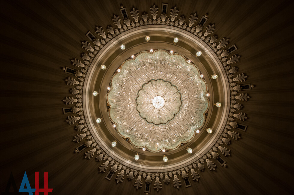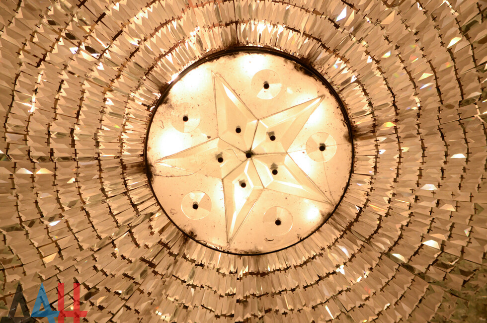 Уход за одним из центральных элементов декора крайне трудоемкий. Чтобы снять с люстры пыль и заменить полторы сотни лампочек требуются усилия не одного десятка человек. Прежде всего, им предстоит сдвинуть часть кресел от центра зала, освободив пространство для люстры. Затем несколько человек вручную приводят в движение расположенный на чердаке механизм, который на тросе опускает ее вниз. От них требуется с предельной осторожностью, равномерно раскрутить барабан лебедки. Параллельно раскручивается кабель электропитания люстры.
