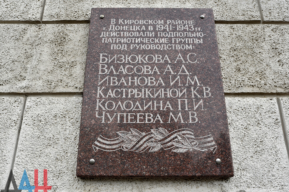 Здание пережило гитлеровскую оккупацию, было разрушено, а затем воссоздано уже после Великой Отечественной войны. О тех героических днях напоминает мемориальная табличка памяти подпольщиков Кировского района Донецка.