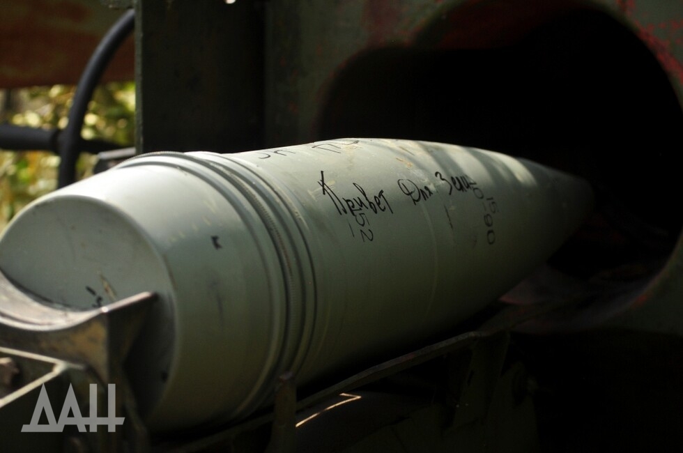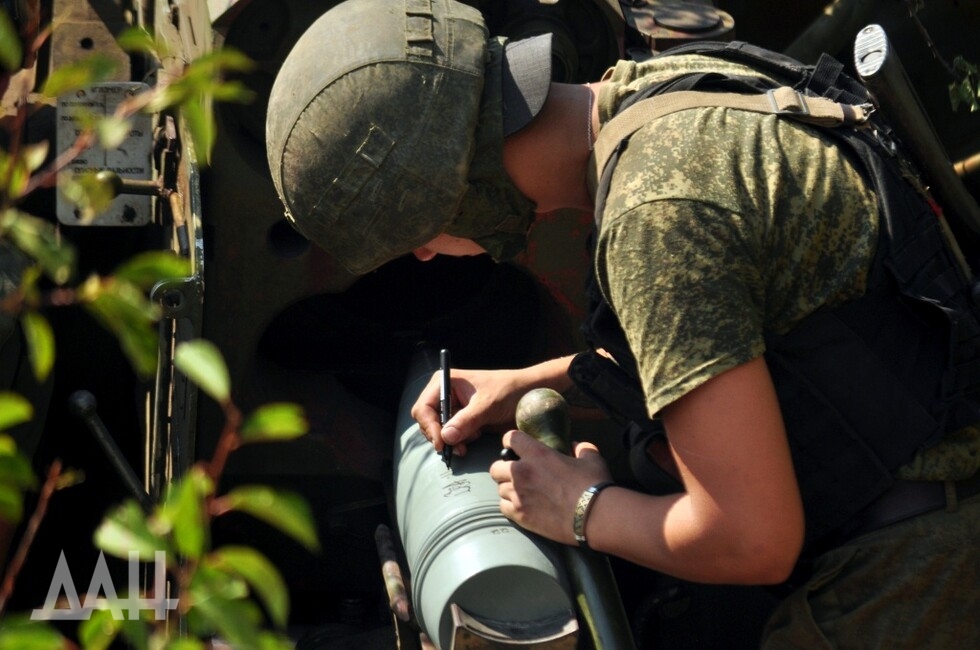 Небольшой перекур. В это время заряжающий с позывным «Балу» достает черный маркер, чтобы подписать снаряд. Этой армейской традиции более ста лет. Тянется она со времен Первой мировой. В Великую Отечественную советские бойцы часто писали послания на снарядах и бомбах. Например: «Подарок Гитлеру», «За отца и мать» или «Смерть немецким оккупантам!». Так и «Балу», следуя дедовскому примеру, выводит на снаряде надписи: «За Донбасс!» и «Привет для Зели». В последнем случае послание адресовано президенту Украины Владимиру Зеленскому. Ну, это почти как «Подарок Гитлеру».