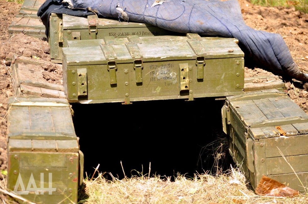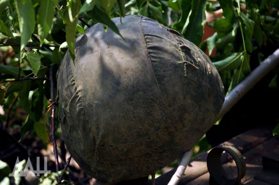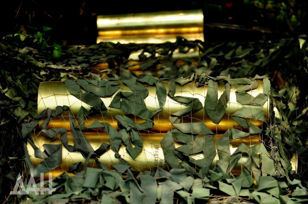 На позициях оборудованы укрытия: над вырытыми землянками — крыши тоже из ящиков. По всему видно, что пристанище — временное: чтобы противник не вычислил позицию, приходится постоянно ее менять. Под деревьями, укрытые маскировочными сетками, лежат снаряды и гильзы с пороховыми зарядами. Там, где сквозь листву и маскировку на гильзы падают солнечные лучи, латунь блестит, как золото.