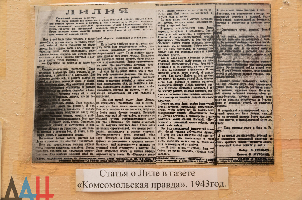 Останки Литвяк были захоронены 29 июля 1969 года в братской могиле в селе Дмитровка как «неизвестной летчицы». «Следопыты из школы №1 Красного Луча (город в ЛНР – прим. ДАН) нашли ее самолет. На приборной панели (в кабине) была изображена лилия и выцарапано слово «мама»», – говорит Чупра.