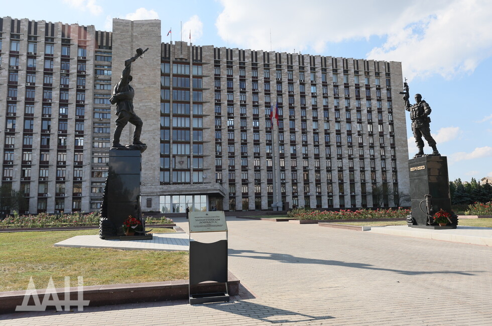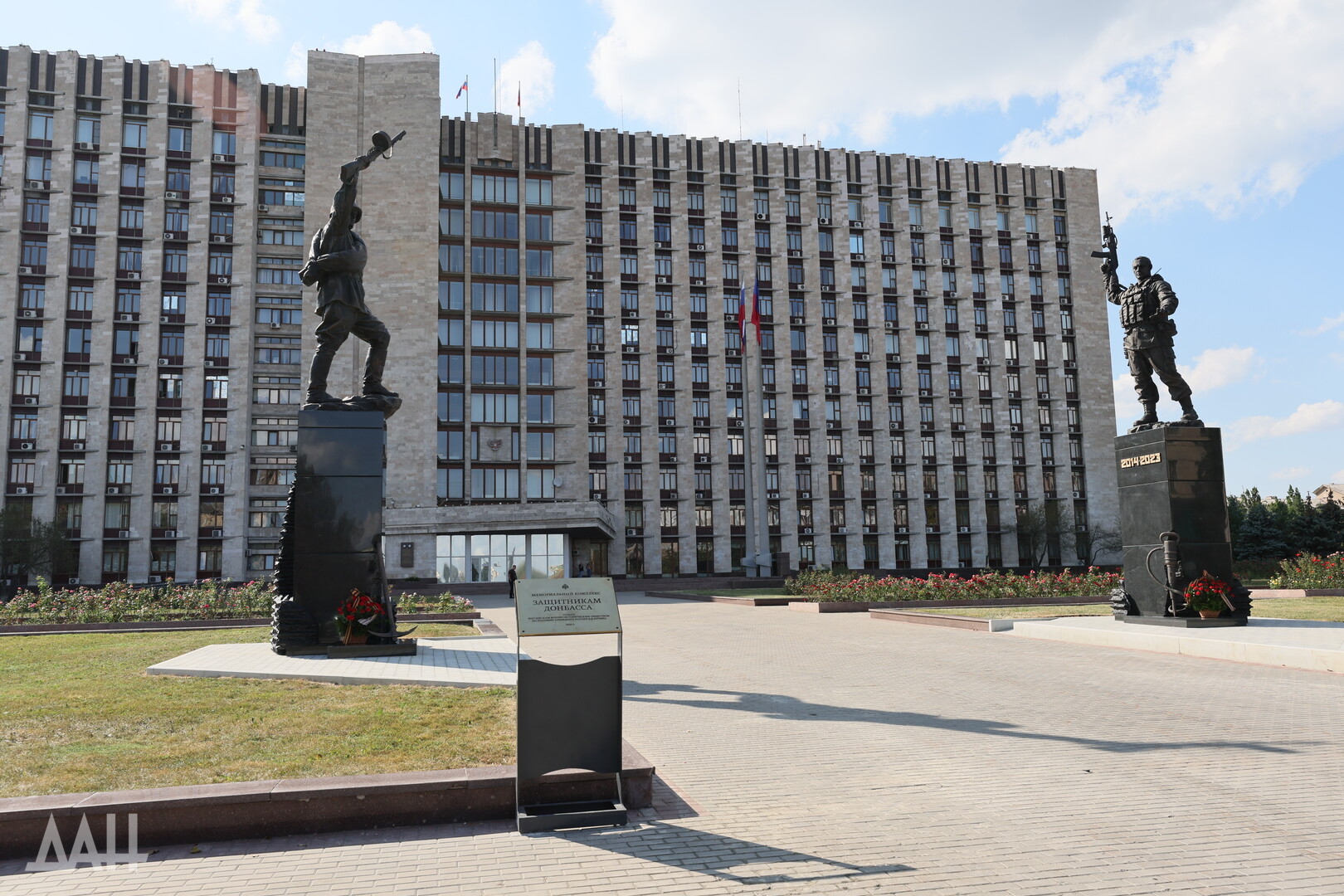 Мемориал «Защитникам Донбасса» появился в центре Донецка накануне 80-й годовщины освобождения региона от фашизма. Он посвящён Шахтёрским дивизиям и символизирует связь поколений. На постаментах изображены дед и внук: один — солдат Красной Армии, другой — боец Донбасского ополчения. Оба — шахтёры. Они встали на защиту Родины в 1941 и 2014 годах.