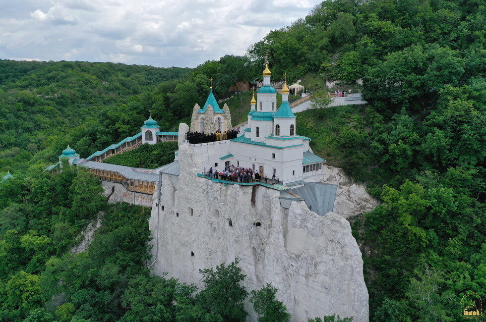 Первые храмы и кельи были вырублены прямо в меловой горе. До наших дней сохранились: пещерный храм Рождества Иоанна Предтечи (изначально трапезная, где был обретён чудотворный образ святителя Николая), храм святителя Николая на скале, подземная церковь Антония и Феодосия Киево-Печерских, пещерная часовня и кельи. В конце XVII века построили наземные храмы: Петра и Павла (1679) и новый каменный Успенский собор (1708).