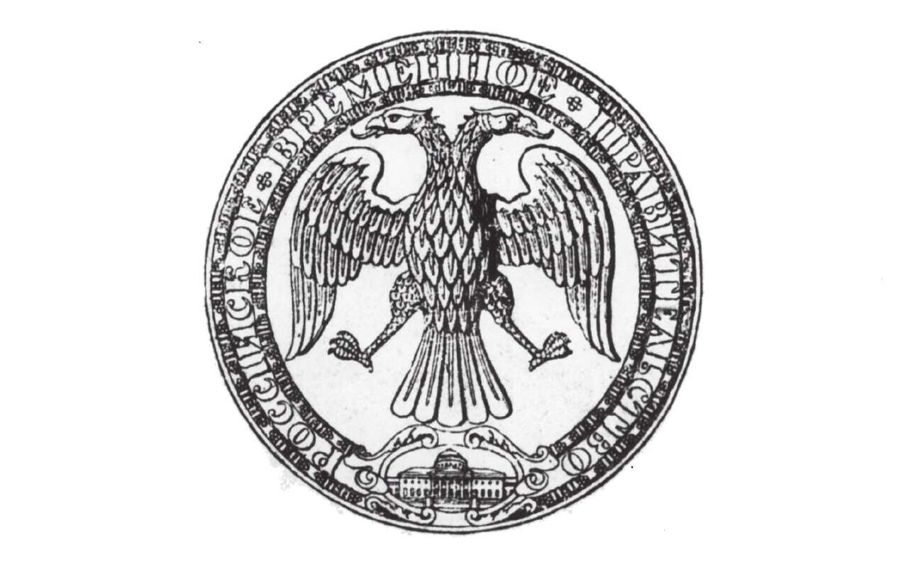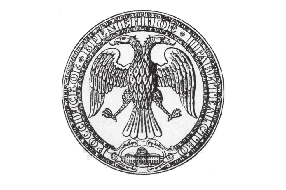Вскоре после Февральской революции 1917 года Временное правительство решило оставить на гербе двуглавого орла, но убрать с него все атрибуты царской власти — короны, скипетр, державу, щиток с Георгием Победоносцем. Не прошло и месяца с отречения императора Николая Второго, а председатель Временного правительства князь Георгий Львов утвердил эскиз печати кабинета министров. Его автором был художник Иван Билибин, известный иллюстрациями к русским сказкам.