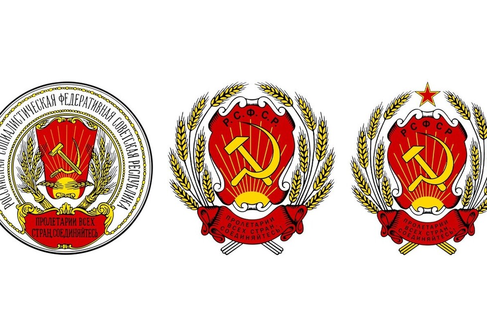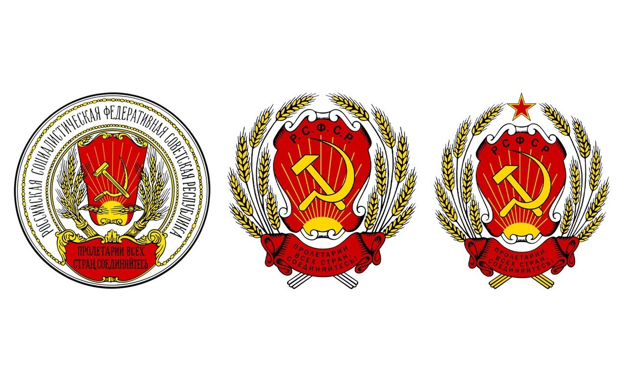 Одновременно в России сохранялся герб РСФСР, разработанный скульптором Николаем Андреевым и утвержденный 20 июля 1920 года. На нем изображались золотые серп и молот на красном фоне в лучах солнца. Основную часть герба обрамляли колосья и надписи «РСФСР» и «Пролетарии всех стран, соединяйтесь». С небольшими изменениями этот герб просуществовал до 1993 года.