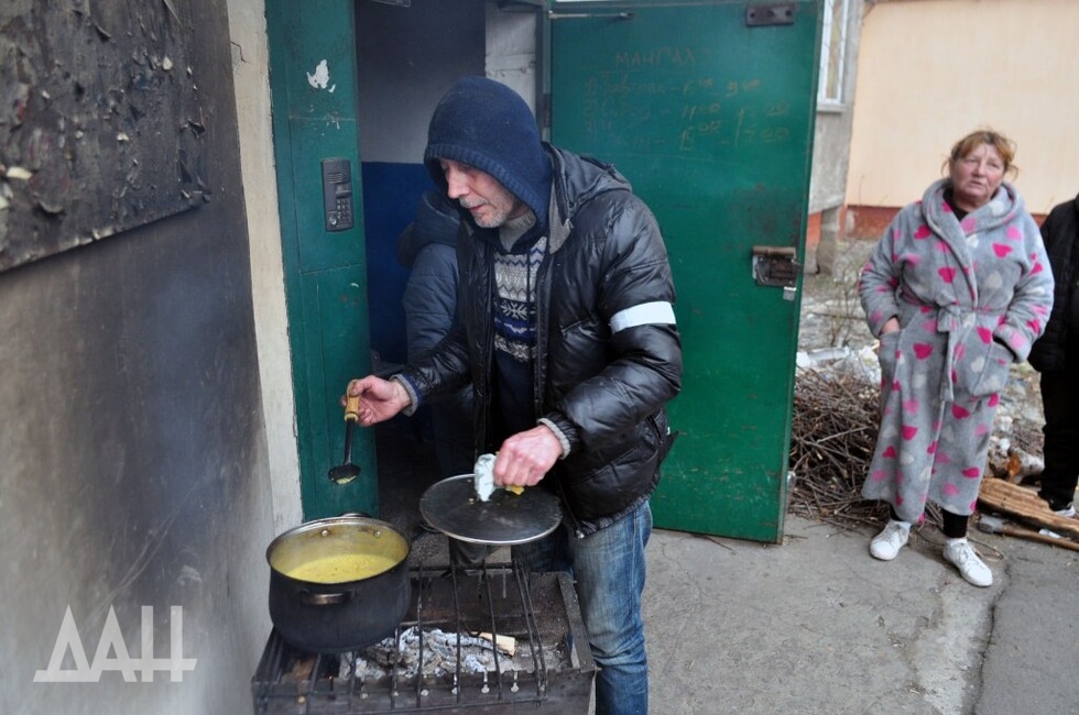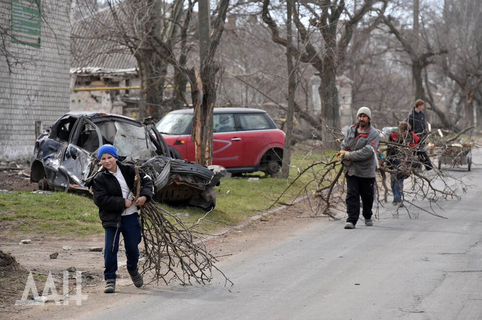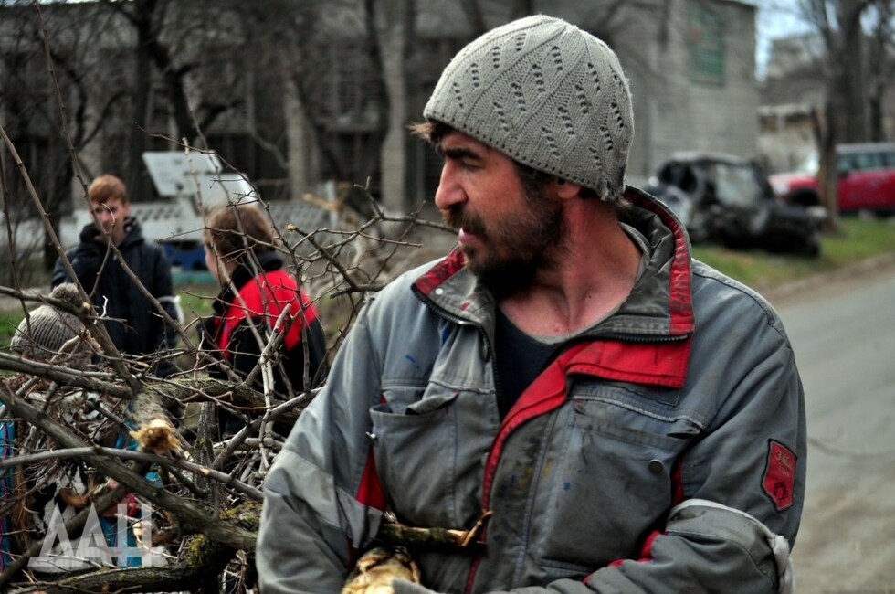 «Света нет, воды нет… И снег закончился. Сейчас главное – это вода. Крупой, мукой и макаронами мы запаслись раньше. Еще б желательно – сигареты раздобыть. Курить хочется… А так, все хорошо, – говорит с грустной иронией местный житель Виталий. – Вот всей семьей тащим ветки на дрова – еду готовим только на живом огне, больше не на чем. А уезжать никуда не будем, подождем, когда все закончится. Думаю, скоро уже. И сын снова в школу пойдет, только учиться будет уже по пятибалльной системе. Правильно же? Пятибалльная система лучше».