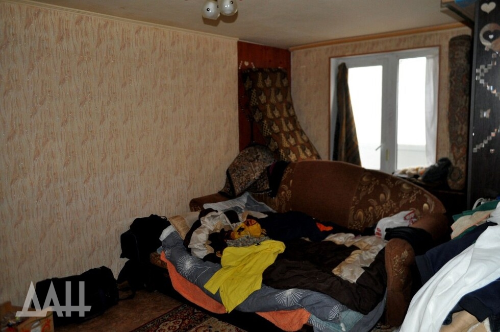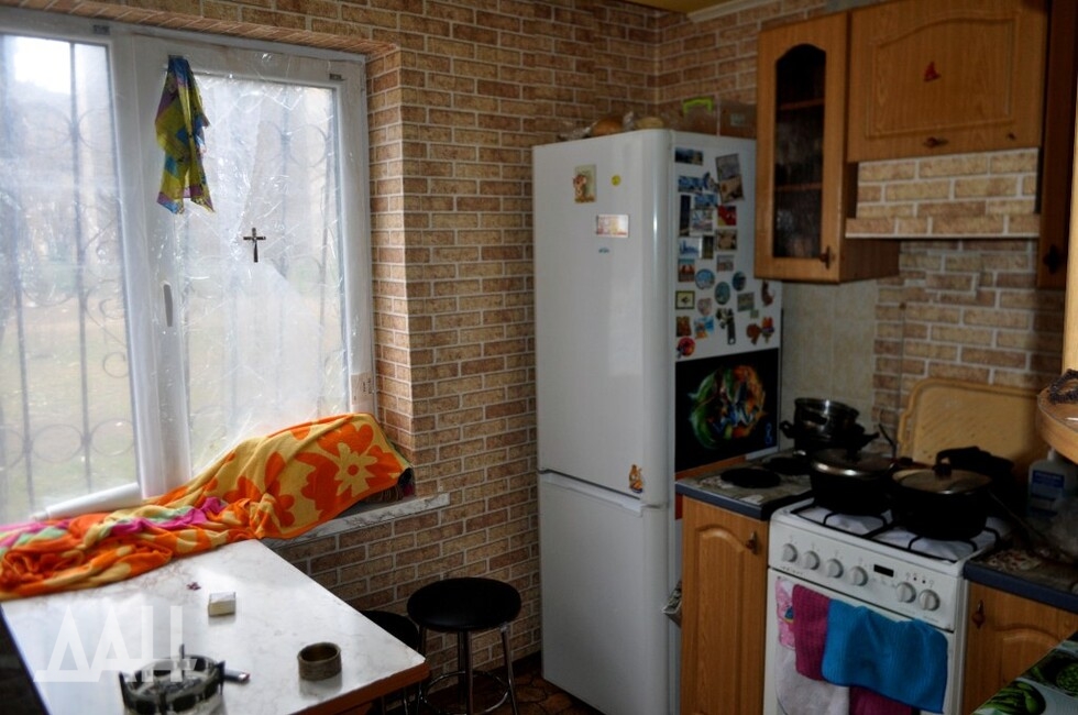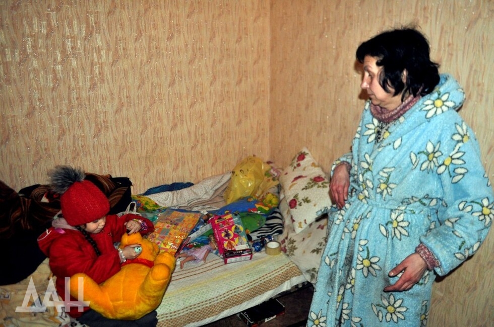 В квартире чисто, но при этом навалено много вещей. Оно и понятно: трое взрослых и ребенок теснятся в одной комнате. Кроме бабушки с внучкой – дочь и зять. Они на тот момент отправились за водой. Сразу обращает на себя внимание деревянный крест. Распятье прикреплено к клеенке, которой закрыто разбитое стекло. «Бог сохранит, на него надеемся», – говорит Наталья.