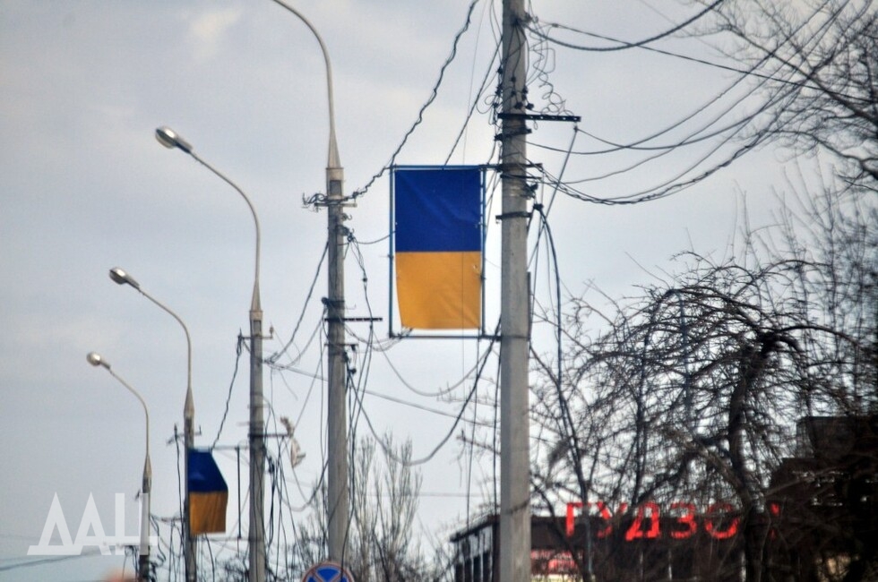 От въезда продвигаемся вглубь Левобережного района, в те места, куда еще недавно нельзя было попасть из-за боев. Но с каждым днем противник отступает, покидая занятые дома и целые кварталы. Остаются еще сине-желтые флаги. На проспекте Победы они висят буквально на каждом столбе. Полощутся на ветру над обломками, осколками, разбитыми витринами и покореженными киосками, как будто что-то кому-то могут еще доказать.