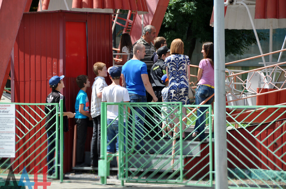 Школьники пятого, седьмого и восьмого класса в сопровождении учителей и медсестры в рамках республиканской акции совершили прогулку по центральному парку имени Щербакова столицы ДНР и бесплатно покатались на четырех аттракционах на выбор. Популярностью у детей пользовались колесо обозрения, автодром и «Орбита».
