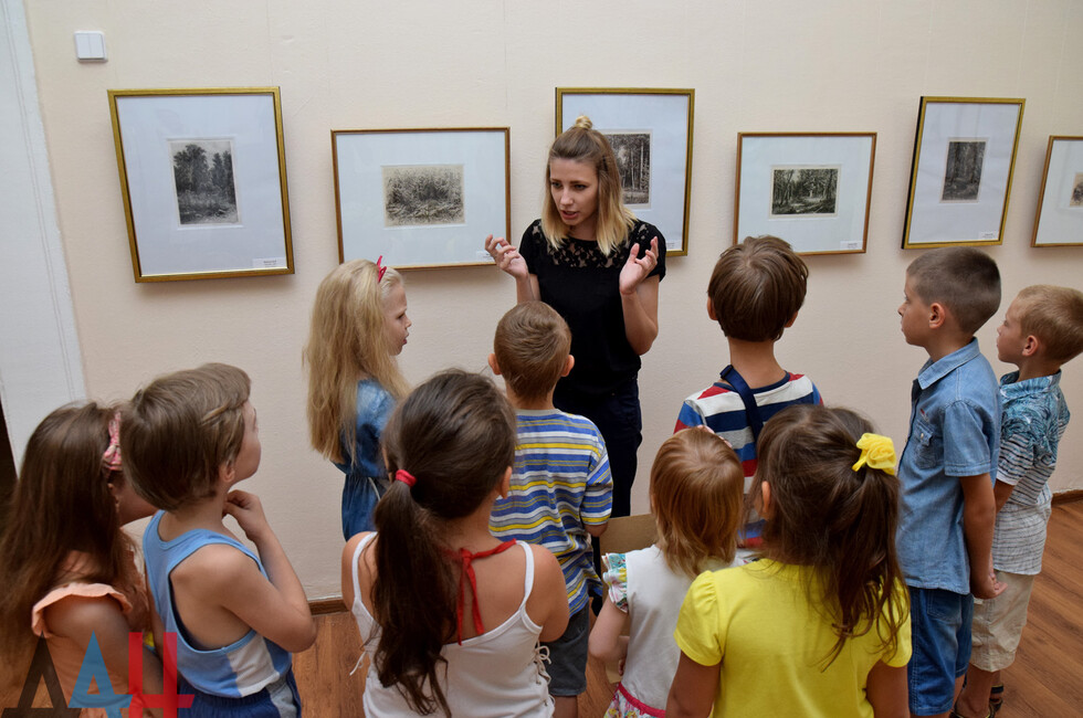 Донецк, 19 авг – корр. ДАН. Дети из ДНР и подконтрольной украинским властям Донецкой области посетили сегодня Донецкий республиканский художественный музей в рамках акции «Нескучный выходной». Сотрудники учреждения провели для них экскурсию, мастер-класс по созданию гравюр, а также ознакомили с основными техниками написания картин.