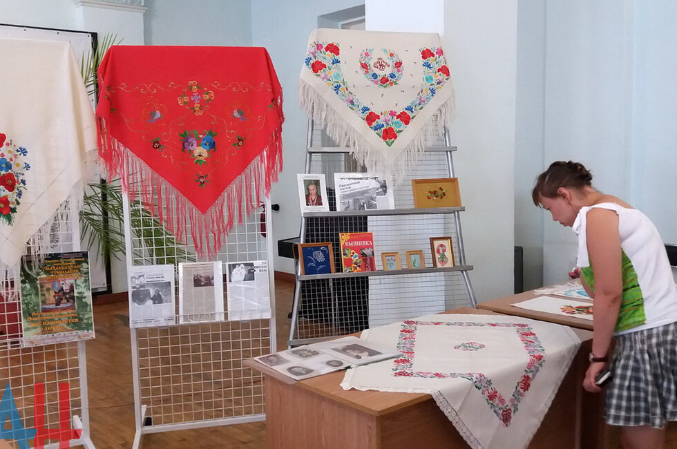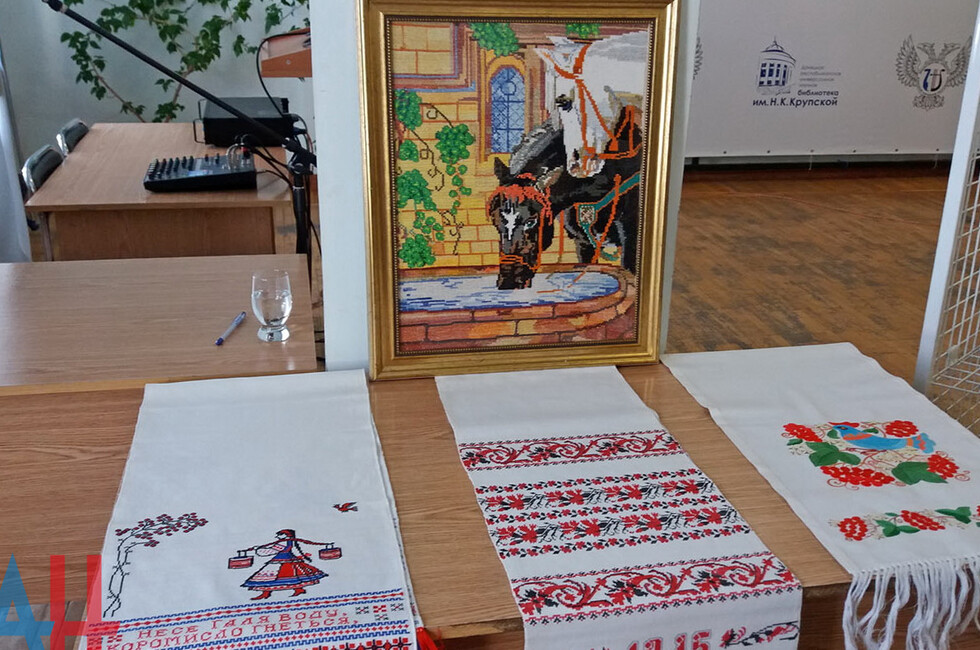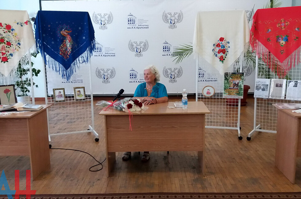 Донецк, 18 авг – корр. ДАН. Признанный мастер вышивки из подконтрольного украинским властям города Дзержинска Эльвира Астапенко сегодня в рамках гуманитарной программы по воссоединению народа Донбасса представила в столице ДНР свои работы. Выставка открылась в лекционном зале Донецкой республиканской универсальной научной библиотеки им. Н.К. Крупской.