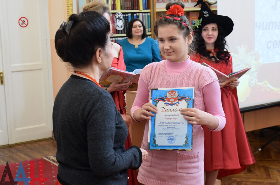 Победители определялись в восьми категориях: «Литературное творчество», «Герб читающей семьи», «Изобразительное искусство», «Семейное торжество», «Творческая мастерская», «Семейный режиссер», «Коллаж», «Реклама». Лучшие были отмечены дипломами и детскими книгами. В число призеров вошли семь семей с подконтрольной Киеву части Донецкой области: Мариуполя, Краматорска, Красногоровки, Угледара и Белозерского.