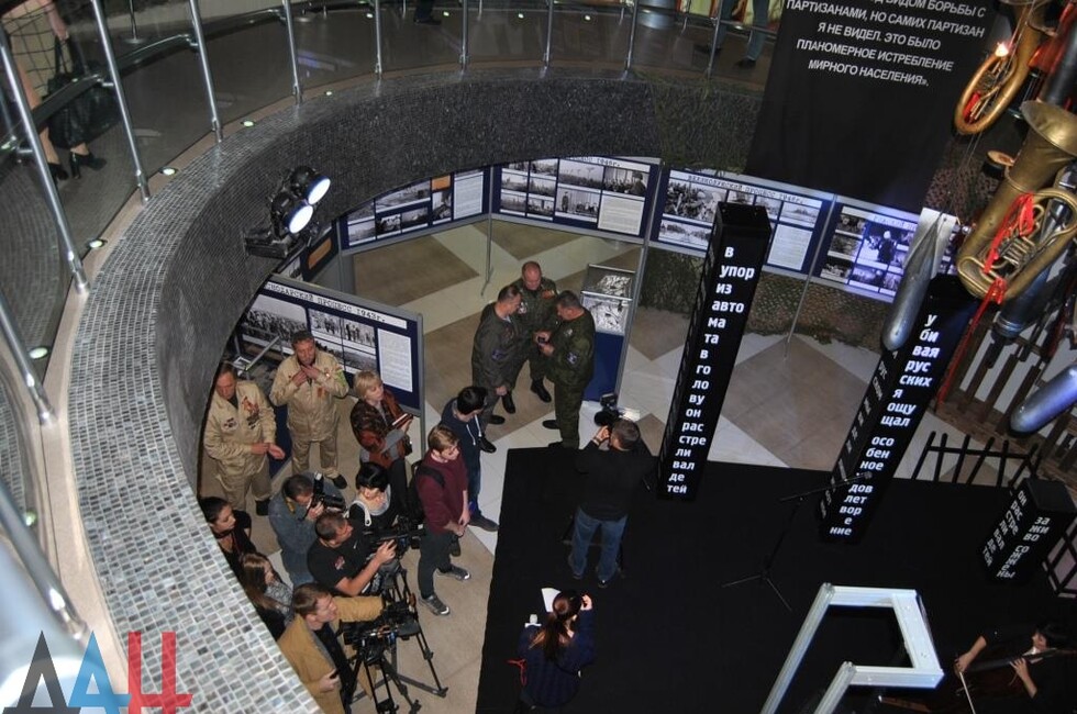 Аристархов подчеркнул, что исторические свидетельства служат предупреждением современным карателям, орудующим в Донбассе: военные преступления и преступления против человечности не останутся безнаказанными. Актуальность темы выставки на ее открытии отметил и председатель Народного Совета ДНР Денис Пушилин, который заверил, что в Республике планомерно идет сбор материалов для будущих судов над военными преступниками.