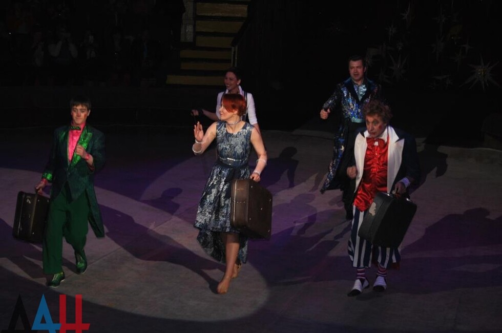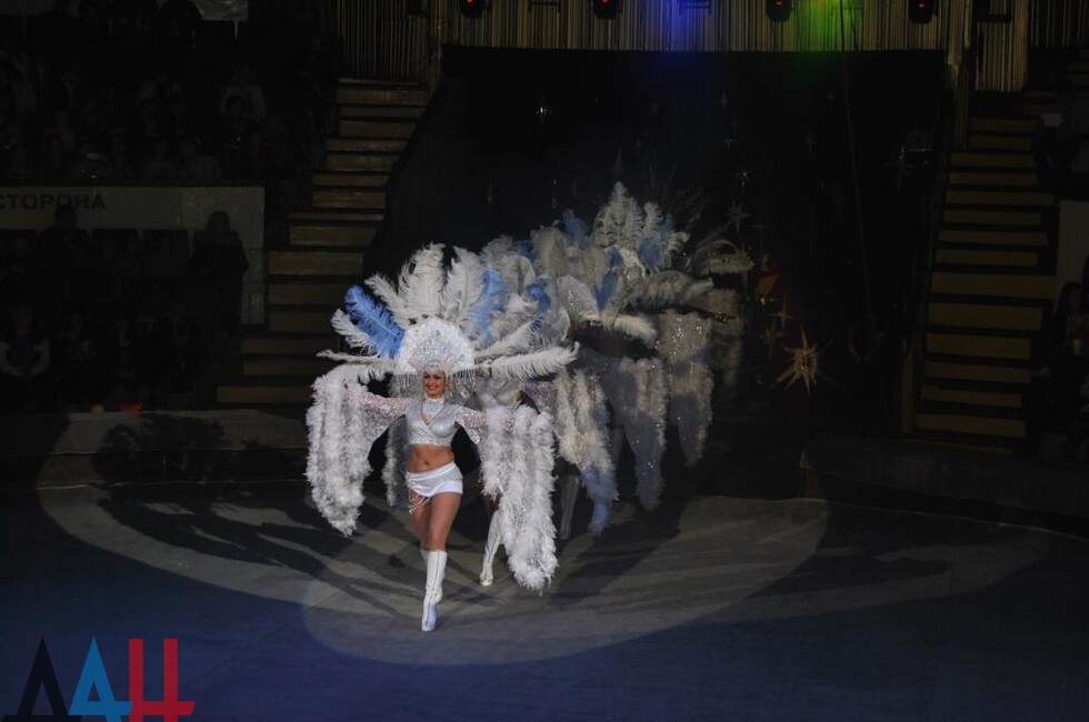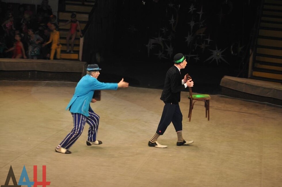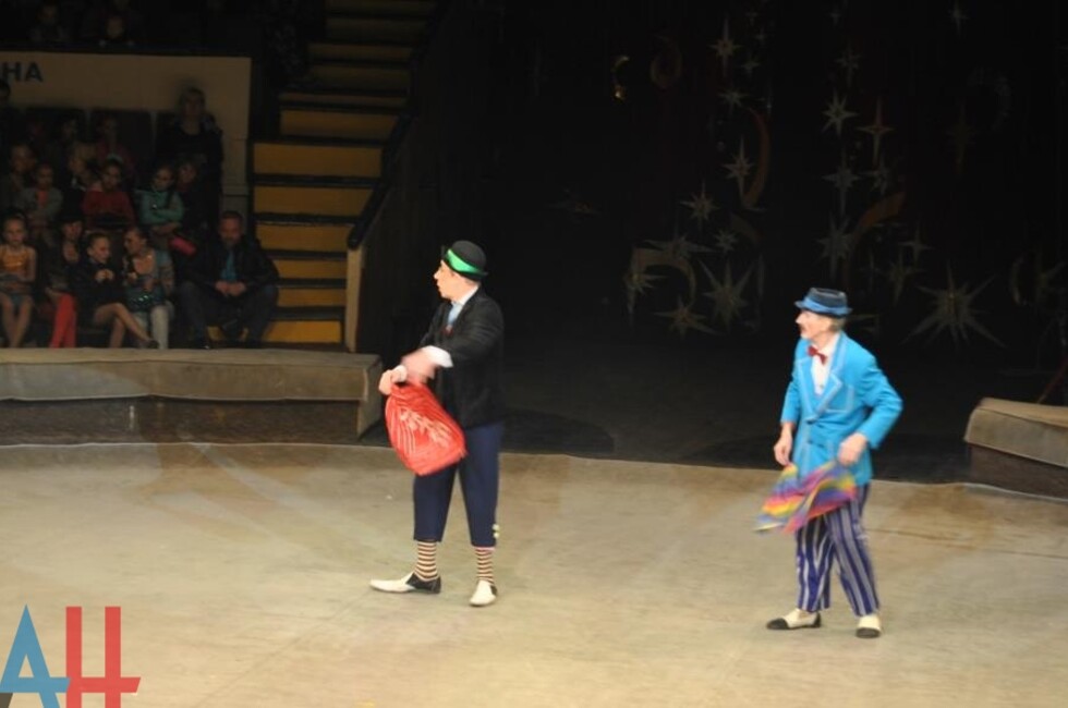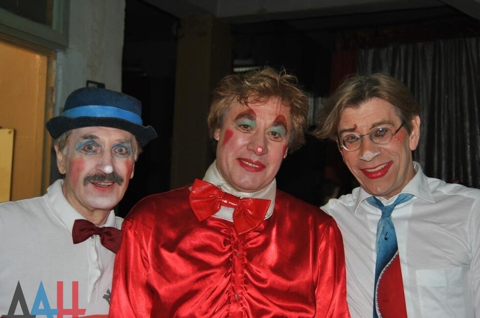 Вместе с клоунами на донецком манеже в Донецке выступили и другие российские артисты - дрессировщики Наталья и Владимир Исайчевы, Ринат Касеев, Надежда Филина, воздушная гимнастка Виктория Надрага, группа артистов под руководством Виктора Савченко с номером "Гигантский велосипед" и другие.
