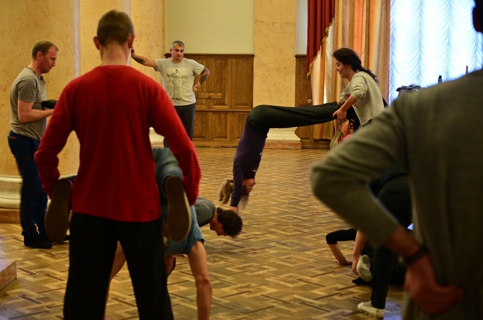 «На базе нашего театра прошли занятия по сценическому движению в рамках культурного проекта «Театральные мастерские-2019». Он реализуется уже третий год театром-фестивалем «Балтийский дом», – говорится в сообщении. – В занятиях приняли участие не только хозяева, но артисты еще трех театров Республики: Донецкого республиканского академического театра юного зрителя, Донецкого республиканского академического театра кукол, Горловского городского театра кукол. Участниками стали более 100 человек».