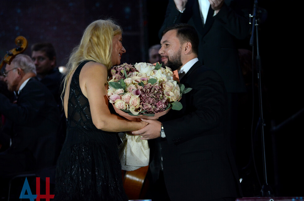 В завершение концерта на сцену вышел Глава ДНР Денис Пушилин. Он вручил пианистке букет роз.